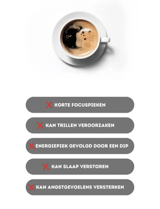 Cafeïnevrij: Geniet van de voordelen zonder de ongewenste bijwerkingen zoals nervositeit, rusteloosheid of slaapproblemen die vaak gepaard gaan met cafeïneconsumptie.