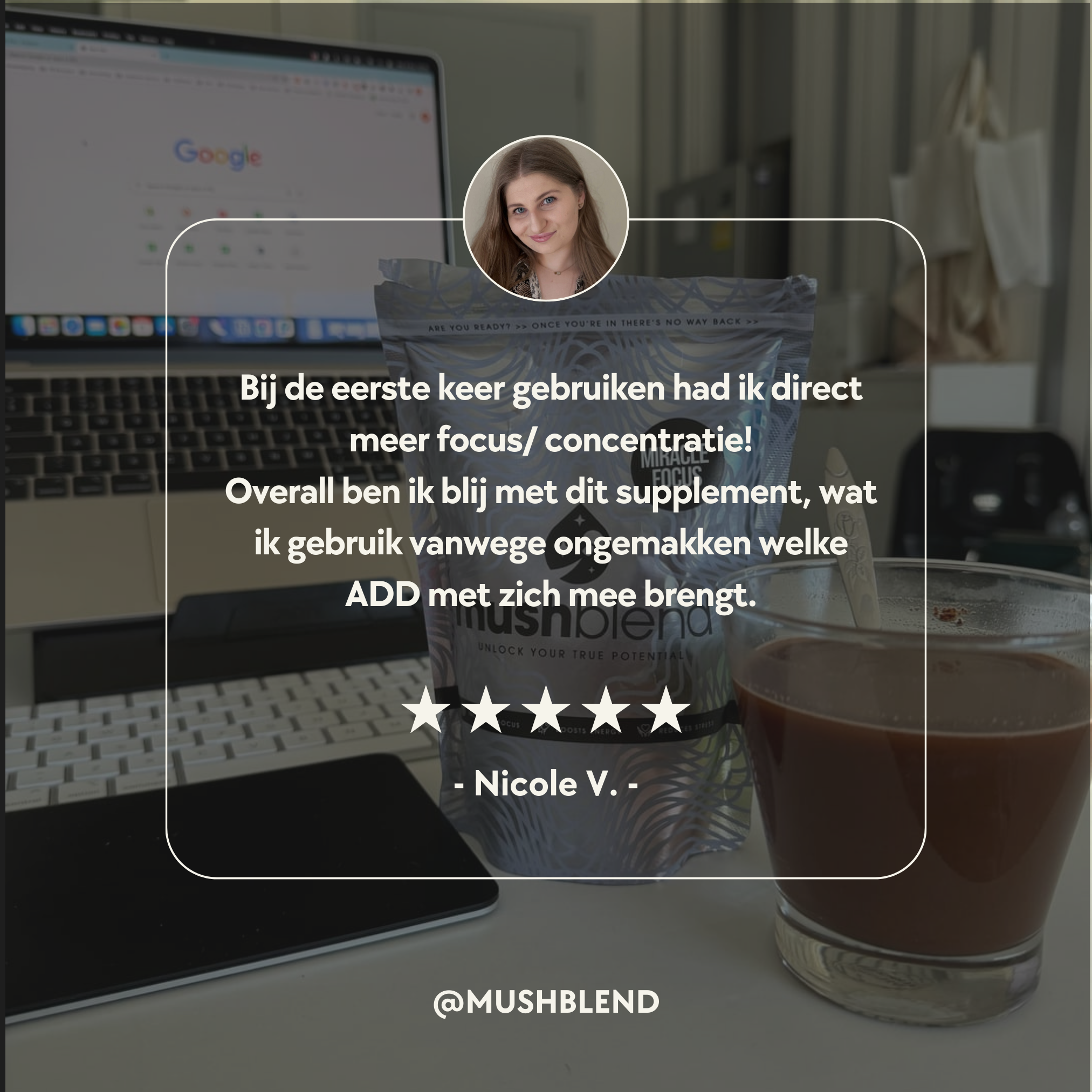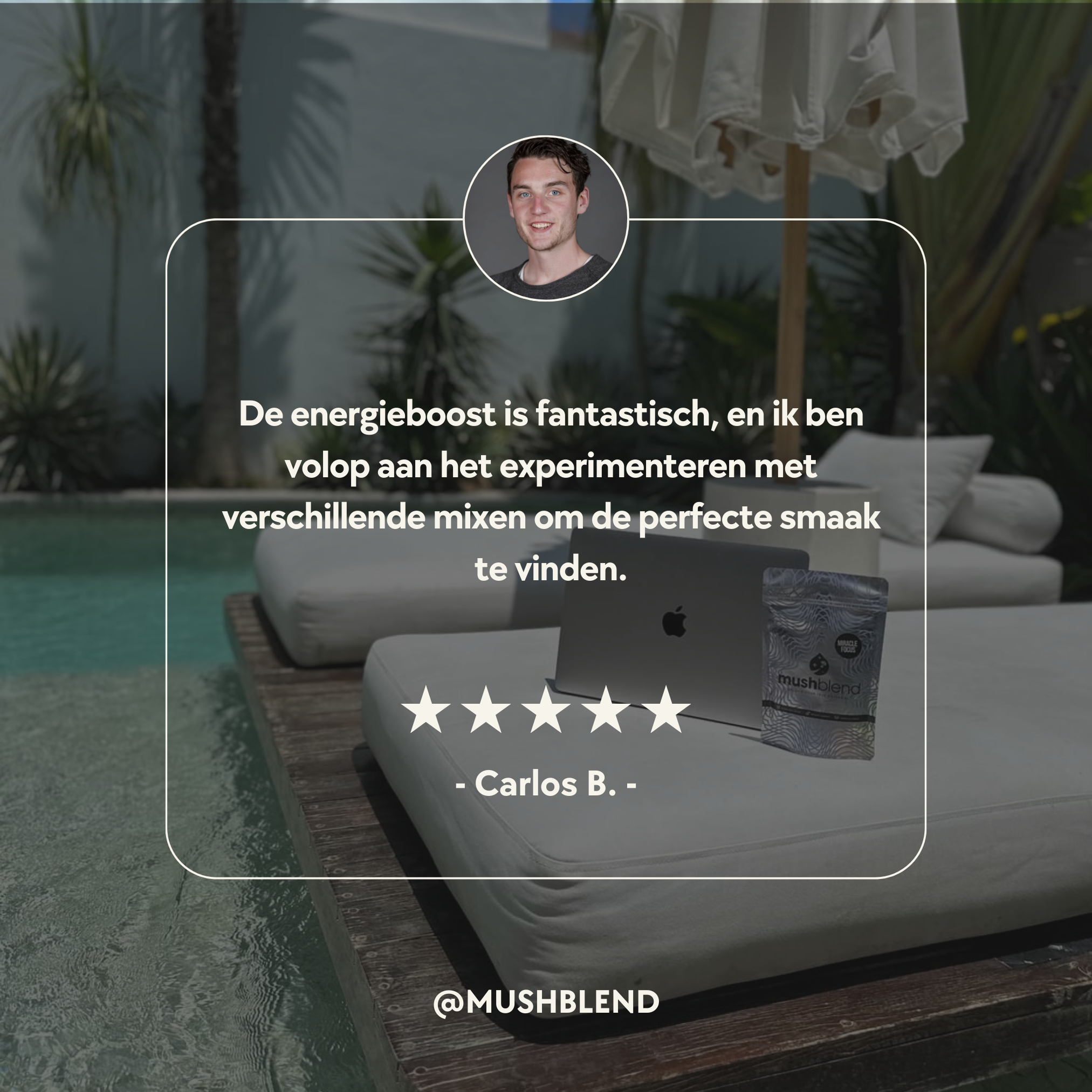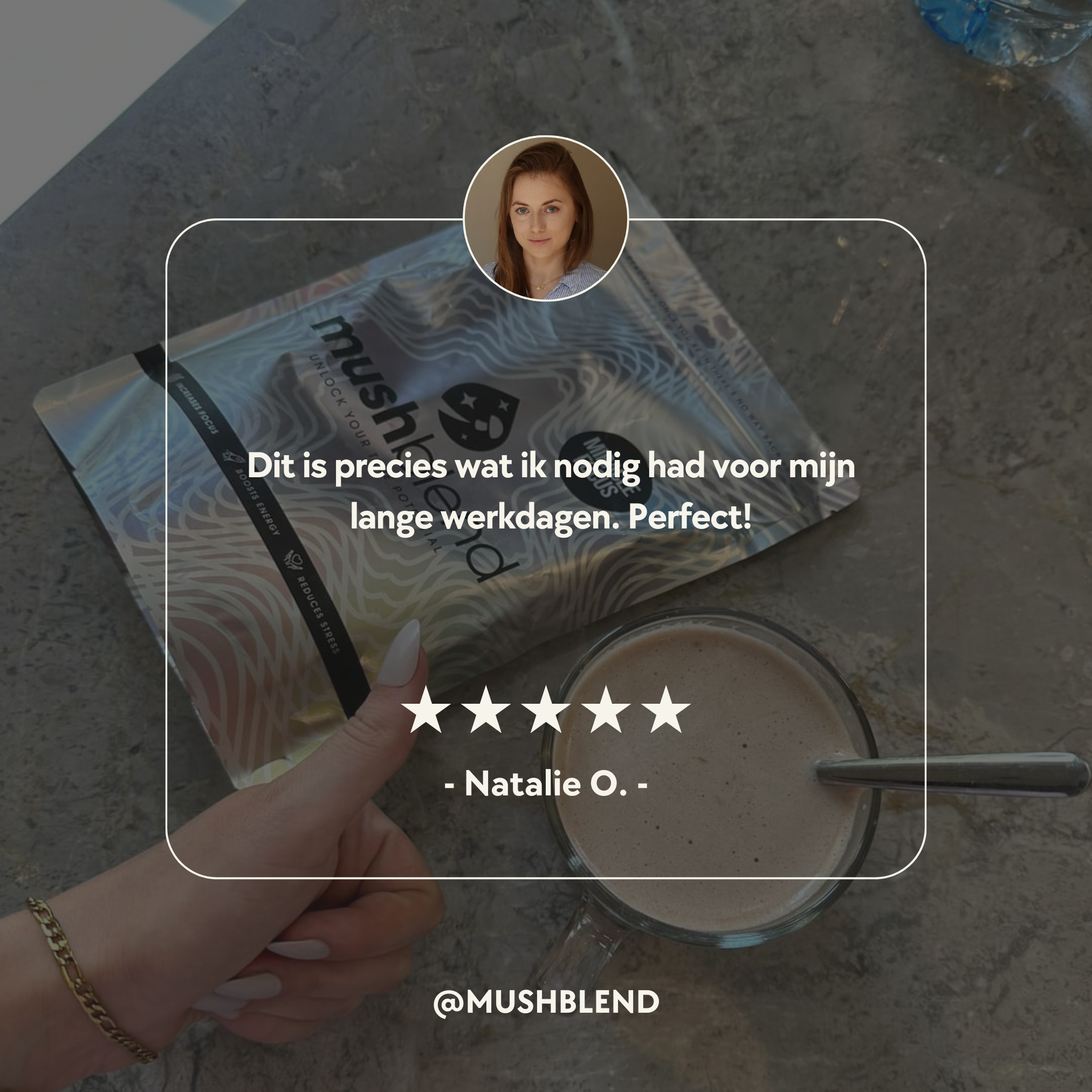 Mushblend is voor mensen die het beste van zichzelf willen maken en ten volle willen leven. Neem 8 gram per dag... en na 1 week voel je al het resultaat.